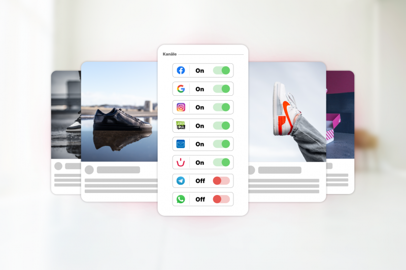 Bewirb deine Produkte einfach ab jetzt direkt auf Google, Facebook oder anderen Marktplätzen: Lege deine Produkte an, wähle einfach deinen Werbekanal. Mit nur wenigen Klicks kannst du deine Reichweite vergrößern und neue Kunden gewinnen.