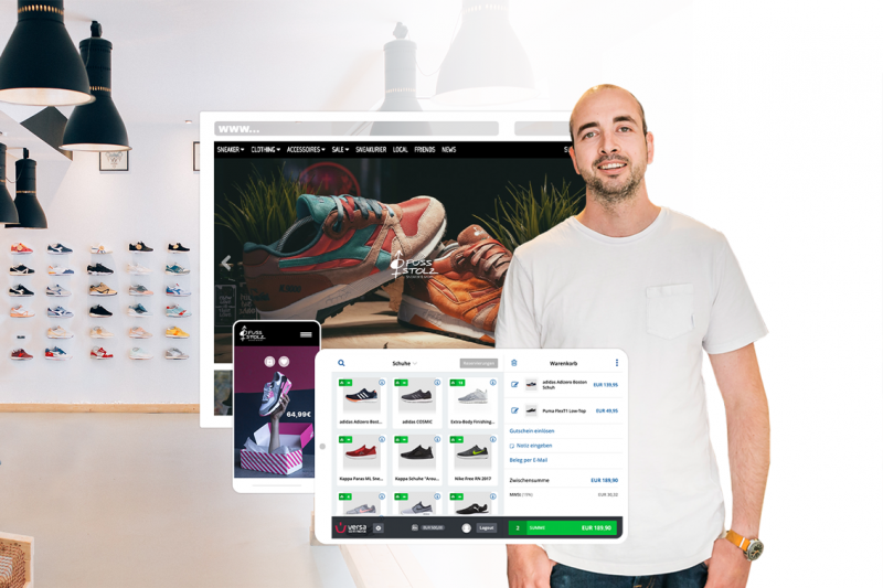 Dein Einzelhandelsgeschäft wird durch einen Online Shop gewinnbringend erweitert. Mit dem VersaCommerce Kassensystem verkaufst du on- und offline – der Warenbestand wird abgeglichen.